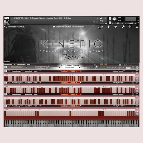 Kirk Hunter Studios「Kinetic Percussion」コードを押さえるだけでシネマティックなリズムが完成!4つのタイムライン×28キーマップ×50,000サンプルを駆使して“動きのある打楽器表現”を誰でも簡単に作れるパーカッション音源