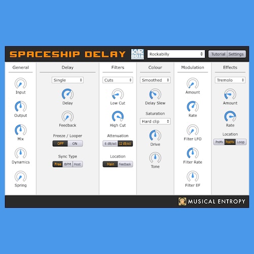 Musical Entropy「Spaceship Delay」モジュレーション・ダイナミクス・Freezeまで搭載!クラシックなエコーからヴィンテージ風揺らぎ、ルーパー的活用までこなす多機能ディレイ