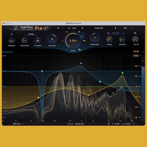 FabFilter「FabFilter Pro-R 2」3次元空間にリバーブを配置!長く明るいハイパー・リアル空間アンビエンス生成と、ドラム・ボーカル理想的な喚起的メタリック・サウンド提供Plate リバーブにより、Pro-R前作の現実的物理環境から明白に合成的テクスチャラル領域へ空間化レミット拡大