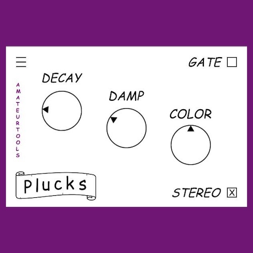 AmateurTools「PLUCKS」オープンソースのプラック弦シンセサイザー!Karplus-Strongアルゴリズムでリアルな弦の響きとレトロなbite感を再現し、長いディケイやステレオモードで現代的な表現力も備えた必聴プラグイン