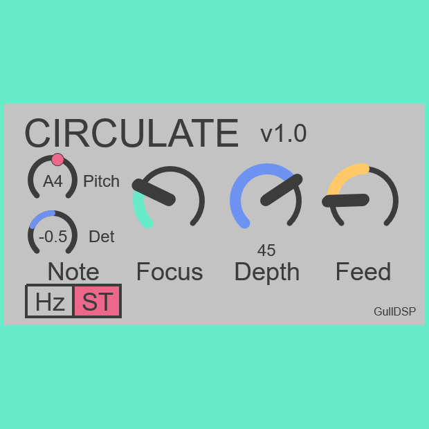 Circulateは、GullDSPによって開発されたオープンソースのVST3オーディオエフェクトプラグインです。