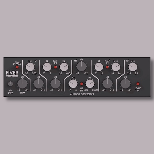 Analog Obsession「FIVER」5バンド構成・直感的UI・ドライブ機能も搭載!無料で使える高品質EQプラグイン|DTMプラグインセール