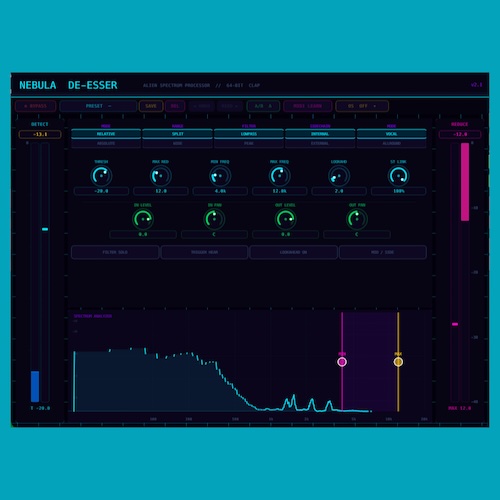 Nebula Audio「NEBULA DEESSER」64bit倍精度DSPで歯擦音を緻密にコントロール!CLAP専用設計で進化した高精度ディエッサー|DTMプラグインセール