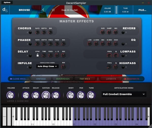 Decent Sampler版のOops! All Cowbellは、手軽さと直感的な操作性が魅力です。