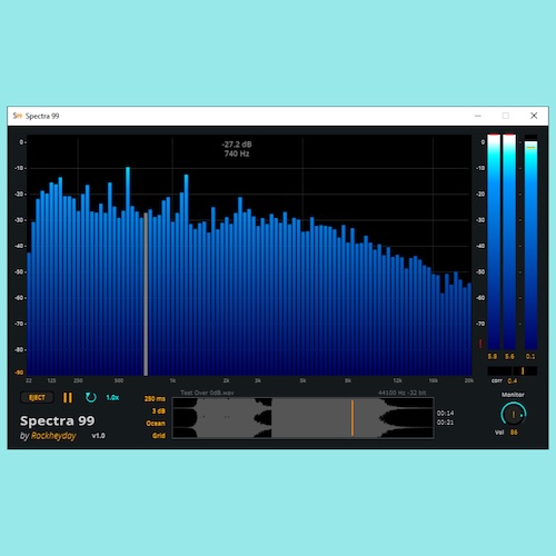 SPECTRA 99はミックスやマスタリング時に、音のバランスや周波数構成を視覚的に把握したいときに便利な、高解像度スペクトラムアナライザーです。