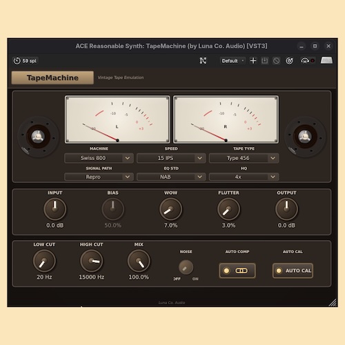 - 入力/出力ゲイン、サチュレーション、バイアス、Wow/Flutter、フィルターなど
