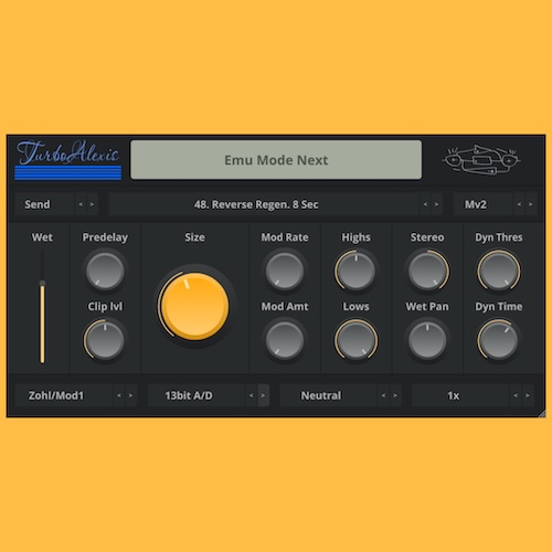 TurboAlexisは、MidiVerb系ハードウェアの質感をベースにしながら、現代的な拡張機能を加えたリバーブプラグインです。