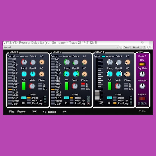 YS – Roomer Delayは、3系統の並列ディレイと複数のステレオモードを備えた、実践的なミキシング向けプラグインです。